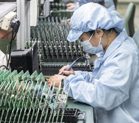冠军体育(中国)官方网站拥有占地15000 平米的厂房、7条生产线及50多种高端的自动化和专业化生产装备共200多台。其中德国原装进口的全自动SMT贴片机,工作速度可达19000个元器件/小时。生产团队从原材料、元器件的进厂检验到冠军体育(中国)官方网站的装配过程,到成品的出厂试验,再到冠军体育(中国)官方网站的监督抽查,层层把关,确保出厂冠军体育(中国)官方网站的高质量标准。